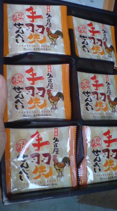 名古屋に行ったみたいで手羽先せんべいを買ってきたみたいです。