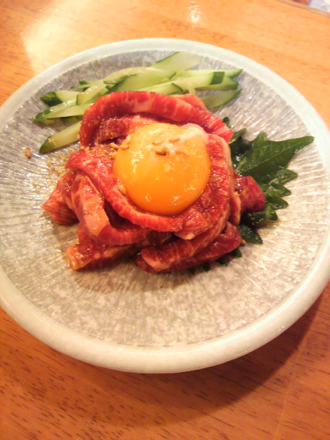 大好物のユッケ(^з^)